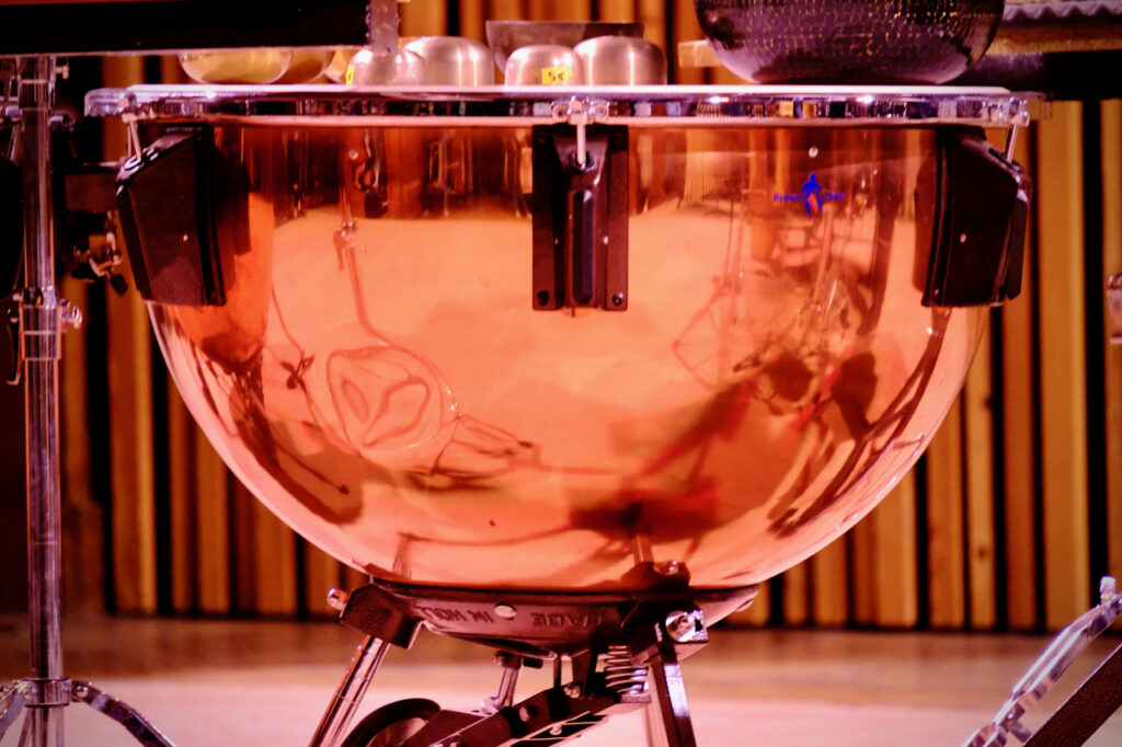 Aurélien Gignoux : Souvent on commence par des baguettes, et on tape sur une caisse claire, un tambour. Un peu ce qui est relié au monde de la batterie. On fait ensuite des claviers, souvent le xylophone. Et on poursuit avec les timbales. Ce sont les trois pôles principaux. Plus on avance en niveau, plus on découvre les instruments. Ce qui est chouette, c’est qu’on n’a jamais vraiment fini de découvrir les instruments à percussions. Tout est instrument de percussion ! Je joue par exemple une sirène à bouche, et je me sers même de l’eau comme instrument. On en découvre tout le temps.