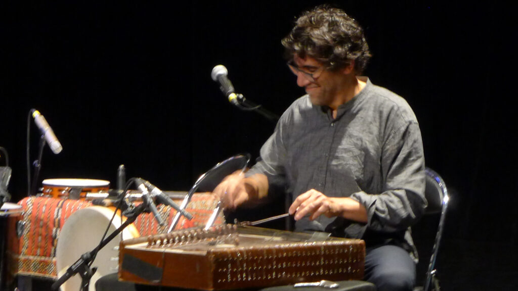 Bijan Chemirani : Oui, on a eu envie de faire ça, parce que ça doit faire 30 ans qu’on joue ensemble, et qu’on voulait se retrouver dans une espèce de laboratoire. Tu parlais du zarb, et c’est effectivement un instrument un peu central. Mais on a aussi agrandi le spectre des instruments de percussion et les instruments mélodiques, que ça soit le santour pour Keyvan ou les luths pour moi. Je pense que c’était un besoin, d’avoir cette forme de complément, quand on fait du rythme, c’est évidemment passionnant et il y a énormément de choses, mais ça se complète bien, d’avoir un instrument mélodique. Et dans les deux sens, d’ailleurs, pour un mélodiste de travailler le rythme. Ça nourrit énormément. Et puis c’est beaucoup de plaisir, de jouer ensemble, on se connait très bien, c’est la famille…