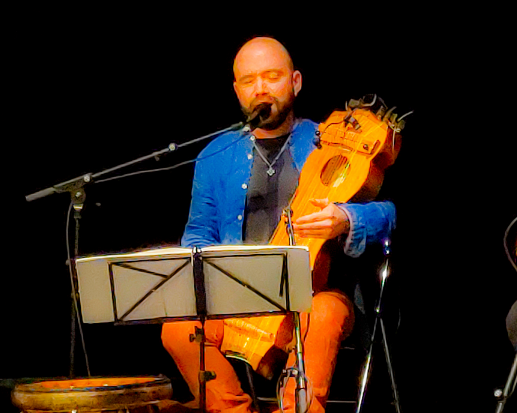 Julen Achiary : Pour Haratago, j’ai proposé à des amis d’entrer dans ce projet, d’abord pour le côté humain, mais aussi parce que ce sont des improvisateurs. Je voulais quelque chose qui repose sur le dialogue musical. Haratago rassemble Nicolas Najot, qui est un fabuleux clarinettiste et joueur de doudouk ; Bastien Fantani qui joue la vielle à roue et du banjo ; Jordi Cassagne qui joue le violone, la contrebasse dans la gamme des violes de gambes.