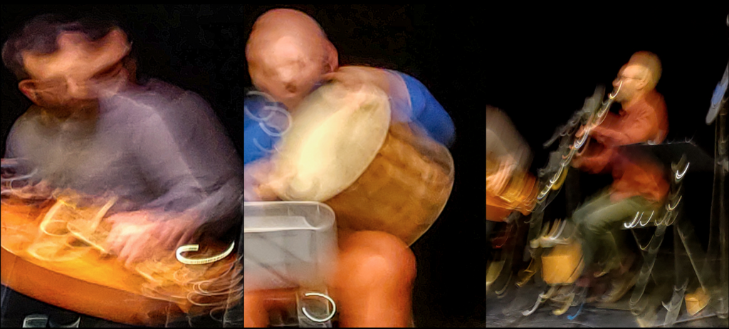Julen Achiary : De beaucoup de percussions différentes. Je suis batteur, je joue aussi des percussions qui viennent du Caucase. On les nomme nagara en azéri, dohol en arménien, doli en géorgien… C’est une famille de tambours qu’on joue avec les doigts et les mains. Je joue aussi un petit tambour sur cadre, qu’on appelle daf, ou daïr.