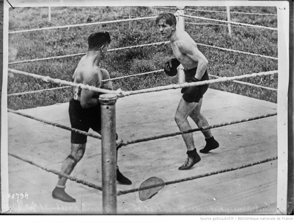 En 2010, j’ai eu envie de reprendre la recherche alors que j’avais mon poste d’enseignant dans le secondaire. L’idée me trottait déjà dans la tête, aussi parce qu’en même temps j’avais repris la boxe. J’avais amené mon fils à la boxe et j’avais repris les entrainements pour pouvoir le suivre. Je commençais aussi à m’impliquer dans le bureau de la salle de boxe. J’ai pris les fonctions d’abord de secrétaire, puis je suis devenu le président du club. J’ai eu envie de faire de la recherche historique sur la boxe. Et en fait c’est mon futur directeur de recherche qui m’a suggéré et aiguillé sur Georges Carpentier. Lui est spécialiste de l’Histoire du football. Dans ses recherches il rencontrait beaucoup justement Georges Carpentier. C’était une omniprésence dans la presse de la Belle Epoque. Une figure qui était extrêmement présente.